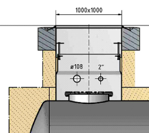 Het ondergrondse buffervat kan tevens worden uitgerust met een inspectieschacht met afsluitbare verzonken deksel met gasveren (zie afbeelding).
