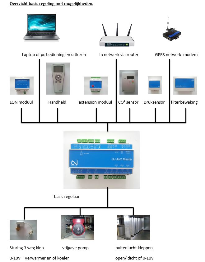 Behoefte-afhankelijk ventileren is ook mogelijk op basis van CO2, luchtkwaliteit, drukverlies of luchtvochtigheid. Elke unit is intern afgezekerd en volledig bedraad tot op de werkschakelaar. Als optie is sturing van een driewegklep voor koeler, verwarmer of change over batterij met vrijgave van een pomp mogelijk. Dit is slechts een greep uit de selectie. Wij informeren u graag over de mogelijkheden.